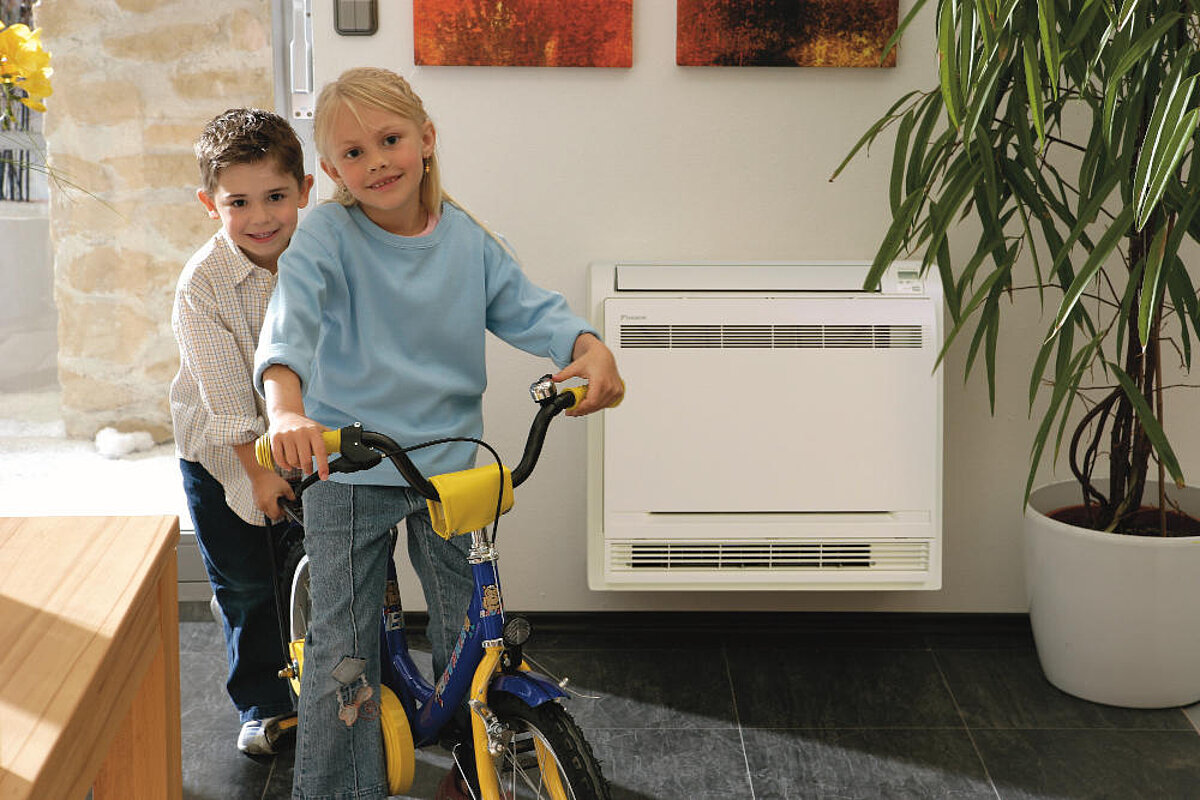 Da Wandgeräte im oberen Bereich eines Raumes montiert werden, nutzen sie zudem die natürliche Luftzirkulation aus: kalte Luft fällt nach unten. Das führt dazu, dass die Luft in dem Raum zugfrei zirkulieren kann und so eine gleichmäßige Temperierung erzielt wird.